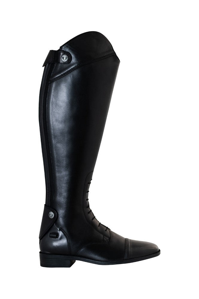 - Make your riding experience more enjoyable with these glamourous TuffRider Capri Leather Field Boots which disclose a passionate and classic outlook. These boots are crafted with a premium leather upper to make them appear mesmerizing and refined. The flex construction and elastic gusset of these boots make them appealing and convenient for prolonged usage. The rubber outsole and memory foam footbed of these field boots offer enhanced protection from water damages and are suitable for all weather conditions. Comes with a Spanish topline, contoured ankle, and spur rest slots like astonishing features that make them comfortable and fashionable at the same time. - Â "Reinforced Steel Shank is used in these boots"