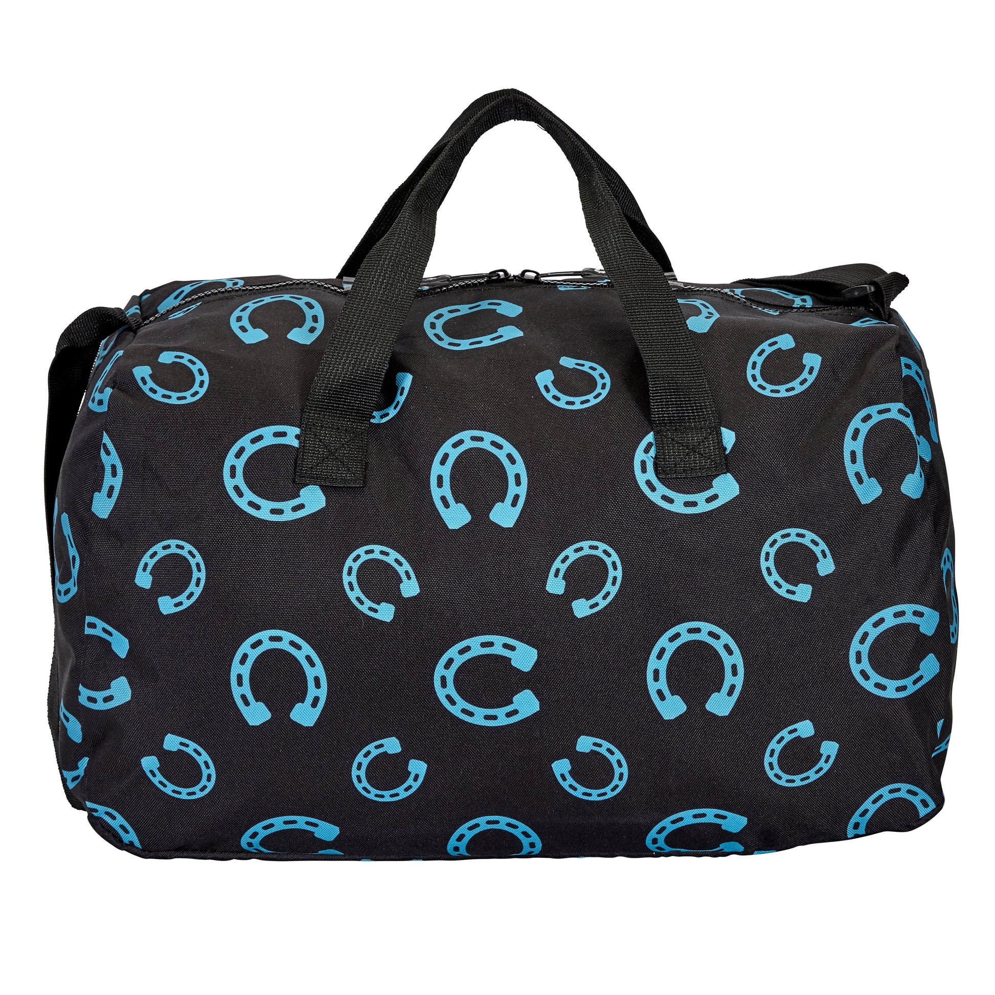 - The AWST Int Travel Duffle Bag is the perfect size for a helmet bag and barn sundries or an overnighter. An all purpose duffle made of 600D Polyester with a large zippered main compartment with heavy duty dual zipper. Designed with an inside divider pocket & front mesh pocket for easy organization. This stylish duffle is ready for traveling with the adjustable shoulder strap and grab handles. Measures 18"L X 11"H X 9"W