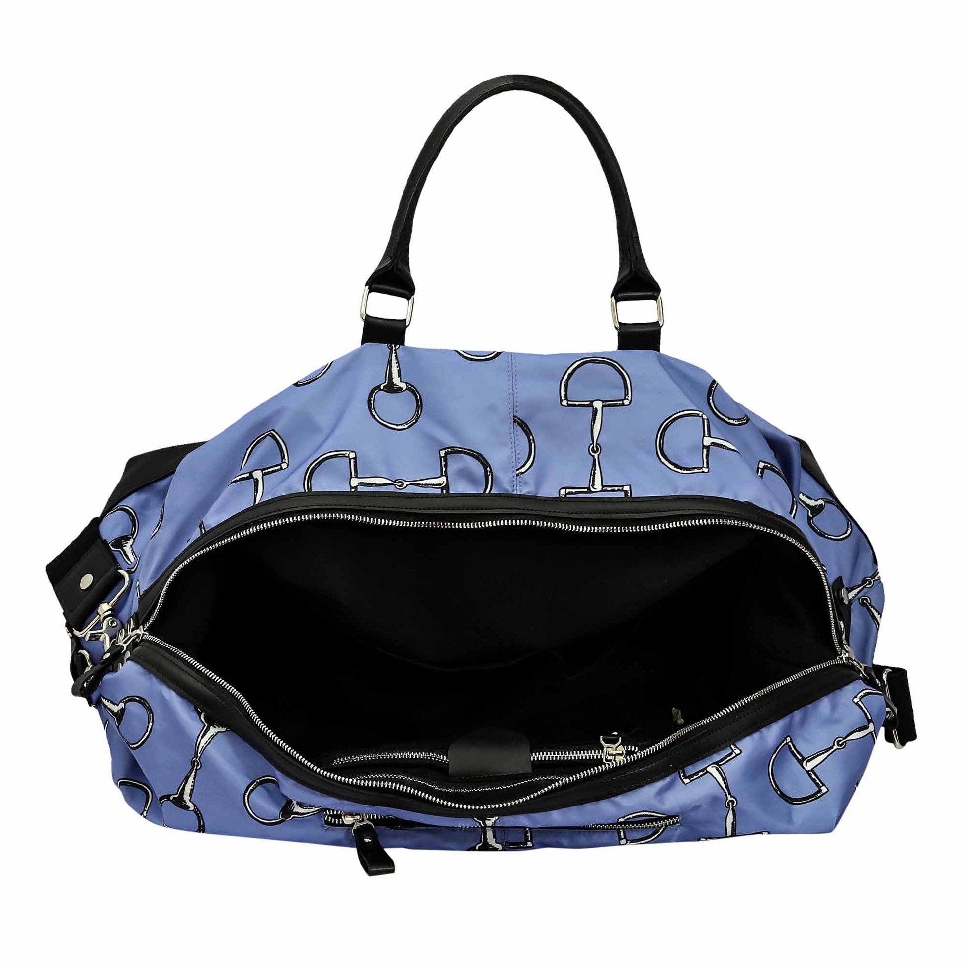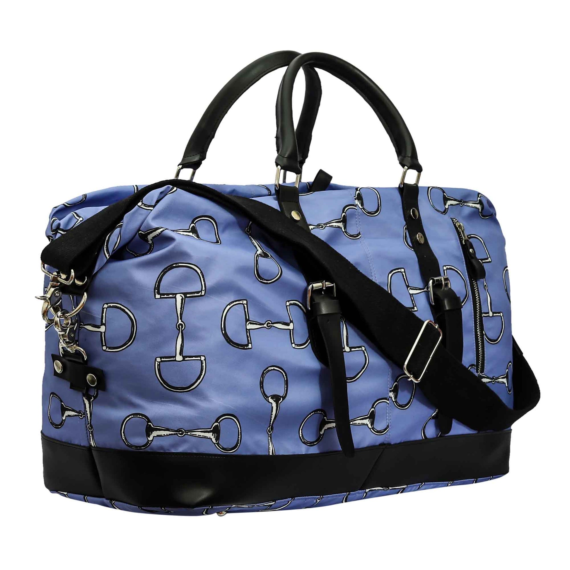 - Introducing the AWST Int'l Lila Vintage Snaffles Strappy Duffel Bag - the perfect blend of durability and attractiveness! With a secure top zip closure, this bag ensures your belongings are safe while you make a fashion statement. The spacious interior features two large pockets, perfect for organizing your essentials, as well as a zippered compartment for stashing your valuables. The lightweight polyester printed fabric enhances the bag's charm, while the strong yet lightweight detachable shoulder strap offers convenience when you're on the go. Upgrade your style with this fabulous duffel bag today!