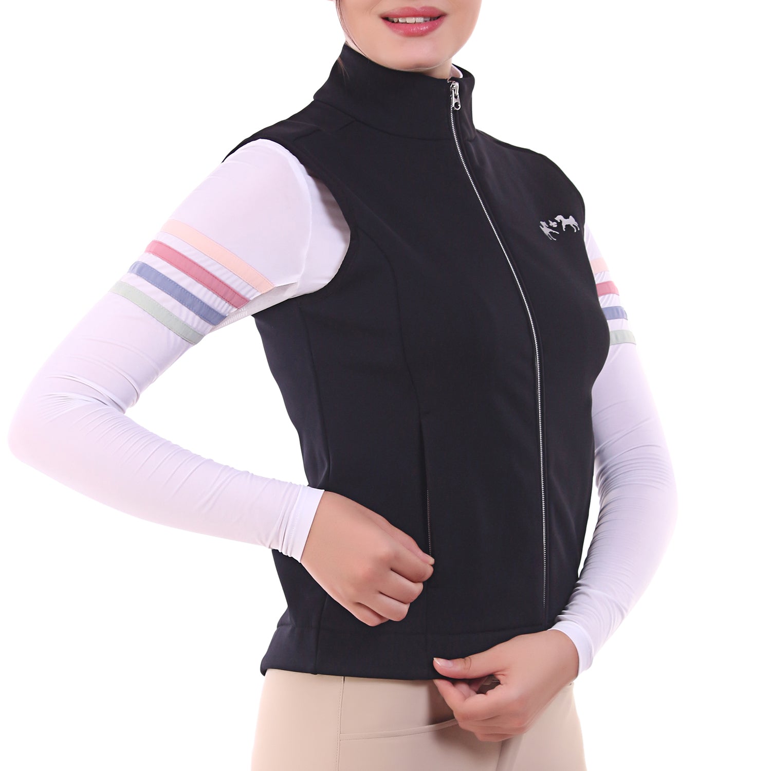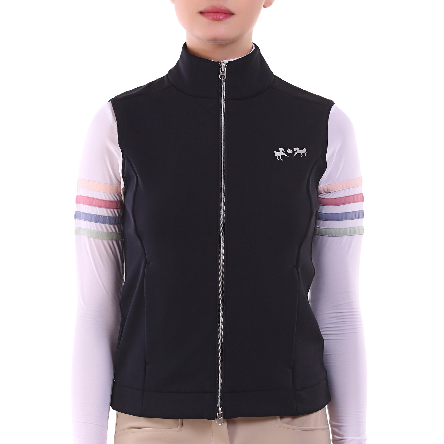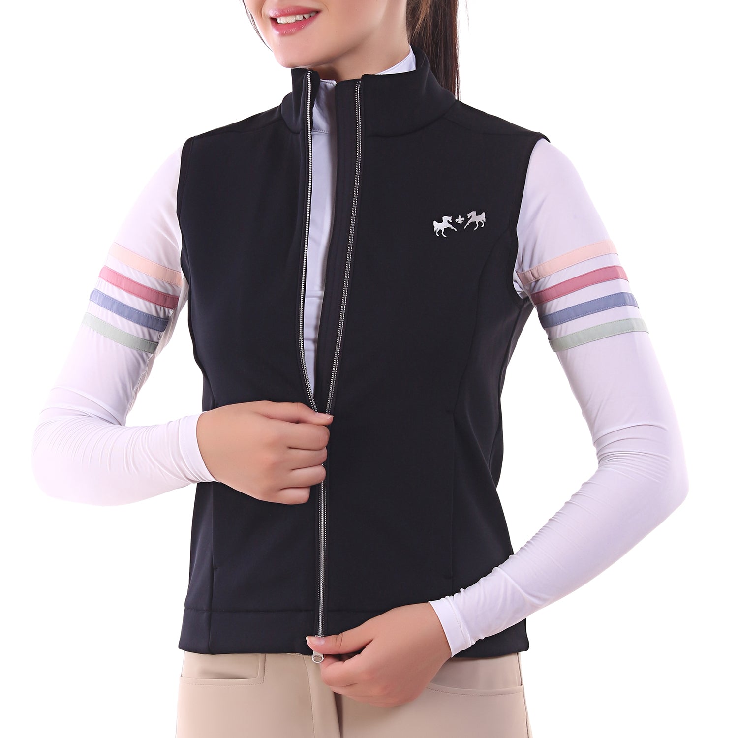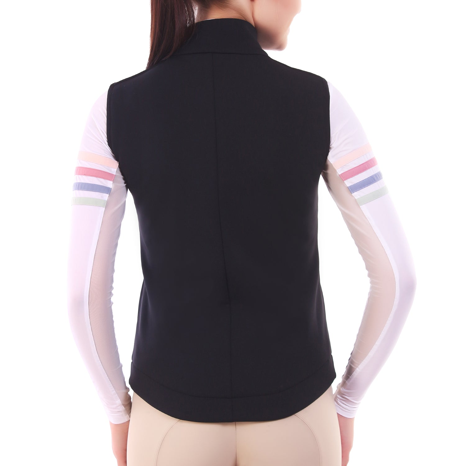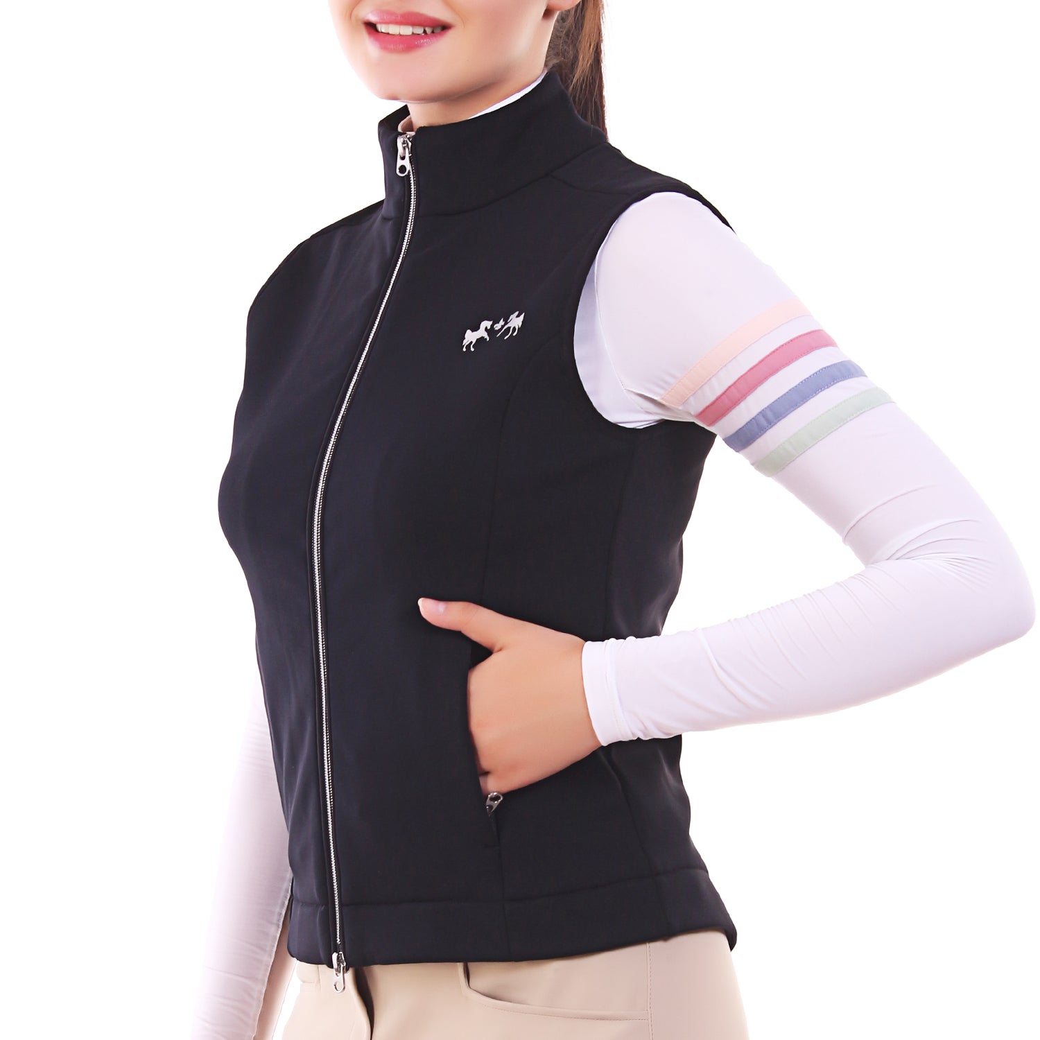Equine Couture Ladies Techno Vest, Perfect for use on those cooler days as a top or layering garment. Made from a special bonded fabric with stretch for ease of movement. Super soft and luxurious, this vest has a flattering fitted shape for a contemporary fashion statement with the added benefit of warmth and function included intelligent pocket design.