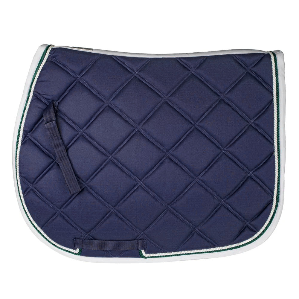 Lettia Equifine All purpose pad is a high-quality saddle pad designed for horses. It is made from a combination of soft, durable materials that ensure the comfort of both the horse and rider. The pad features a sleek design with a diamond quilted pattern with rope piping that fits comfortably under the saddle, while its soft cushioning provides excellent shock absorption. The Equifine All purpose pad is versatile enough to be used for a variety of riding disciplines and training routines. It is perfect for jumping or pleasure riding, as it allows the horse to move freely and comfortably while maintaining excellent contact between the horse and rider. The Lettia Equifine All purpose pad comes in a range of stylish colors and patterns to suit your individual taste and preferences. Its high-quality construction ensures that it will withstand daily wear and tear, making it a reliable and long-lasting investment for any horse owner or rider.