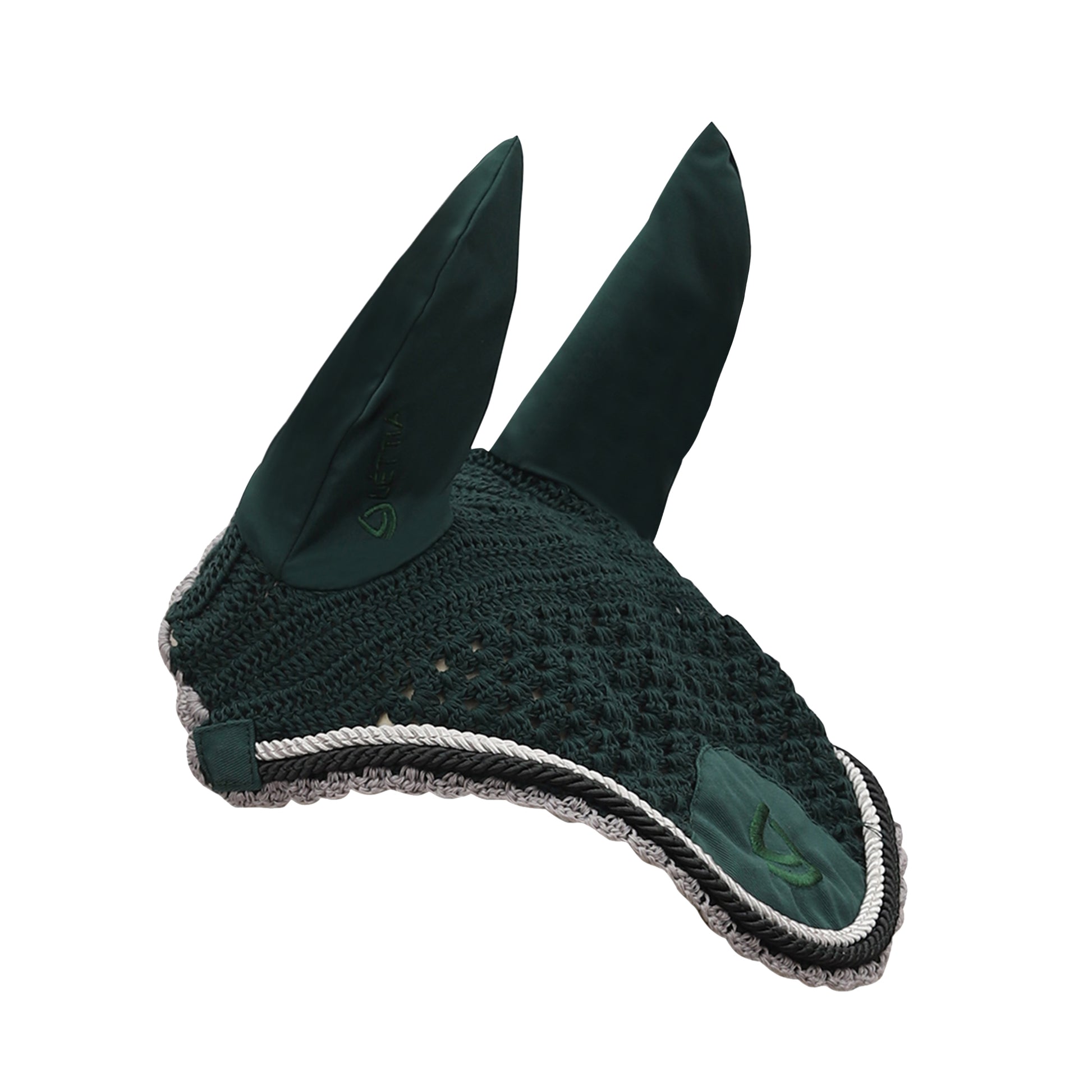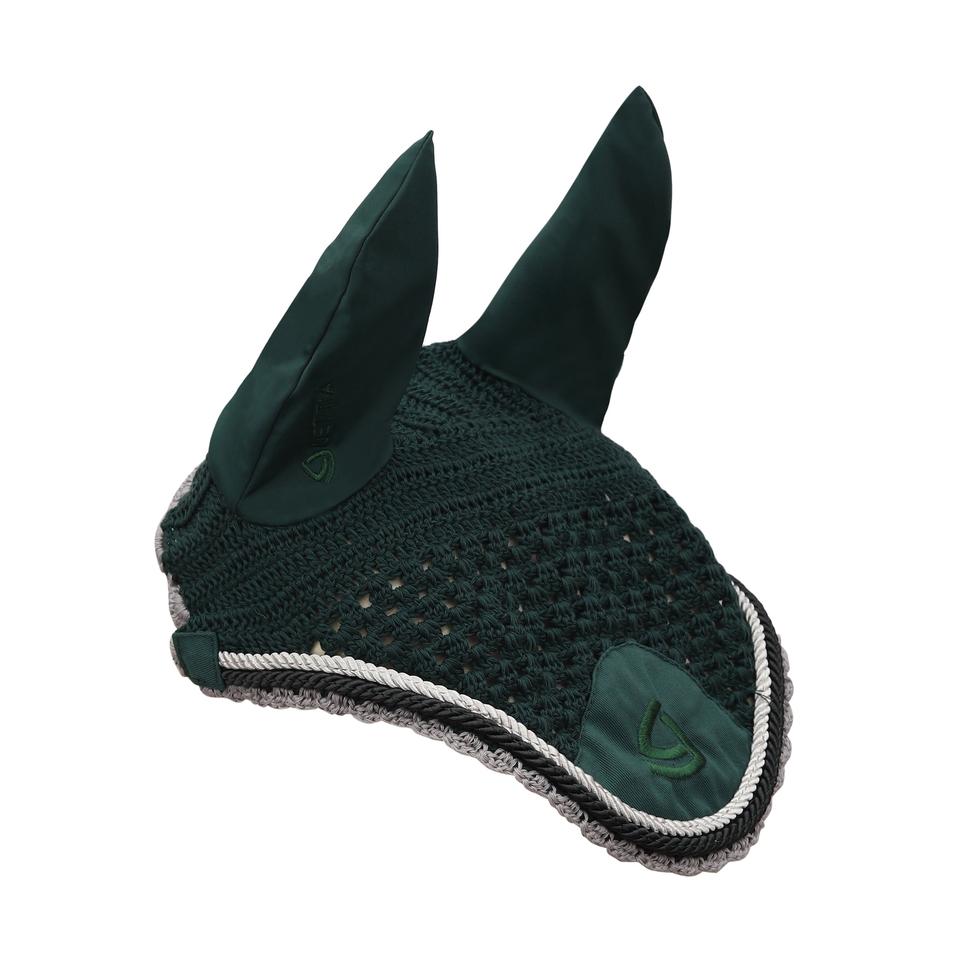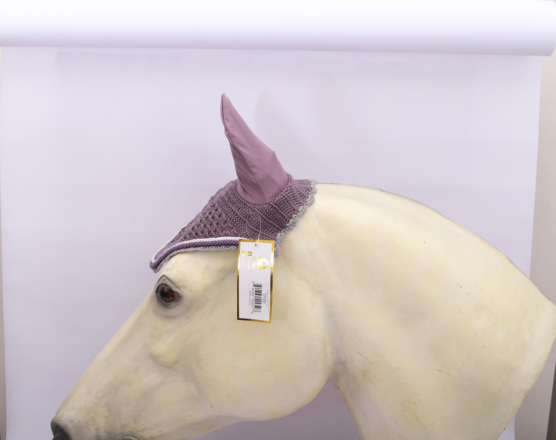 Functional, but still pretty, the Lettia Equifine Ear Net is sure to get you and your horse compliments everywhere you go! Horses can become distracted by flies while riding and this will aid in a more productive ride while keeping you and your horse a bit more safe. This fly bonnet is made with open weave cotton to allow for cooler coverage. We used Spandex for the ears, to allow for a little stretch, which gives your horse freer movement. Washing Instructions - We suggest hand washing this bonnet with a mild detergent in cold water and lay flat to dry, when needed. Pair with matching Equifine Collection Saddle Pad, Halters and leads, Horse boots, socks and Sun shirts for a complete look.