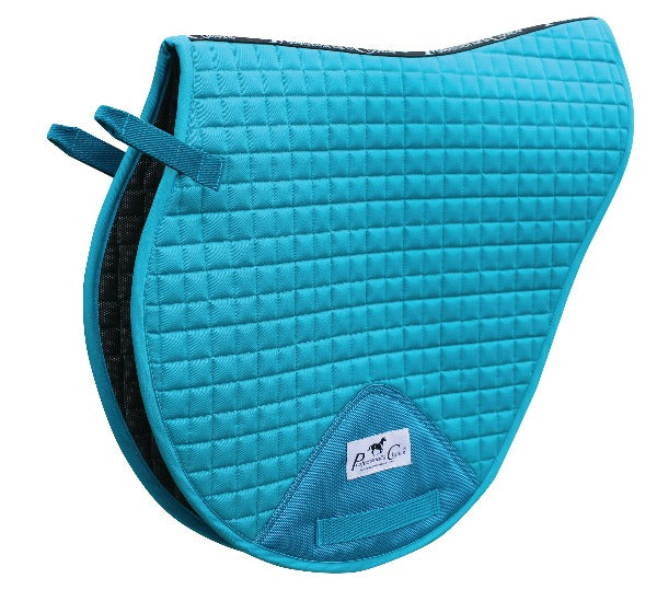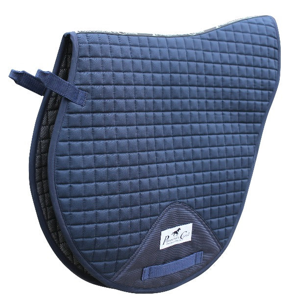 The Professional’s Choice VenTECH® XC pad is the perfect cross country pad. It features a VenTECH® mesh lining which is absorbent, quick drying, extremely breathable and lightweight, and antimicrobial so it will not harbor bacteria. In addition, the quilted cotton top layer is stain resistant. Reinforced ballistic billet guards provide extra durability. The pad is designed with a contoured back for wither clearance and correct fit, which helps keep the pad securely in place. Webbed D-ring straps feature hook and loop for easy application. Designed to fit most jump saddles, including those with more forward flaps.
