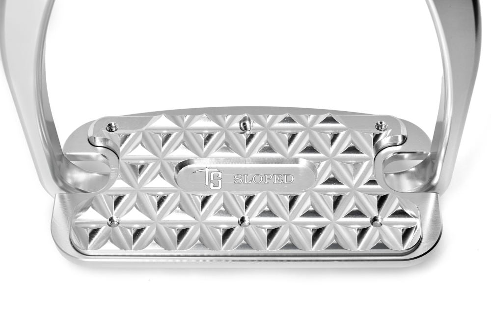 - The Tech Stirrups Turin Hunting Stirrups feature a sloped pad for an improved heel position and a minimalist design that adheres to US Hunter/Jumper guidelines by omitting a logo. Ideal for riders with boot sizes EU 38 (UK 5 – US 7) and above, these stirrups are lightweight at 420g (14.8oz) and have tread dimensions of 12×6.5cm (4-3/4 in) with a 2.5° slope.