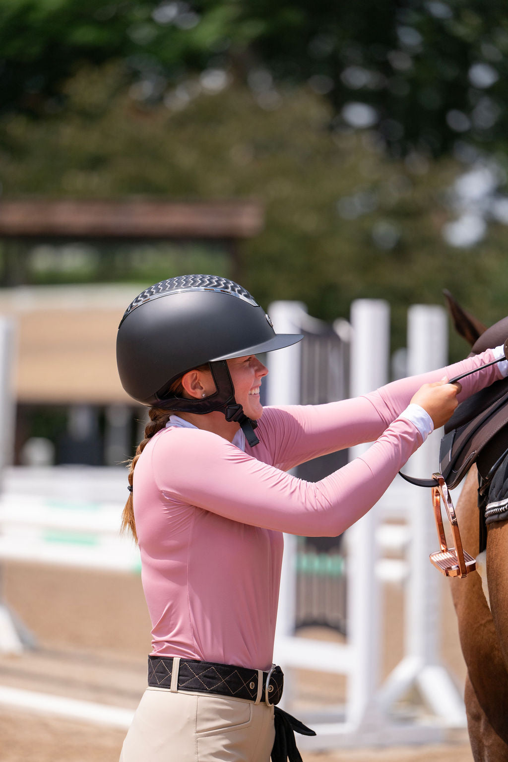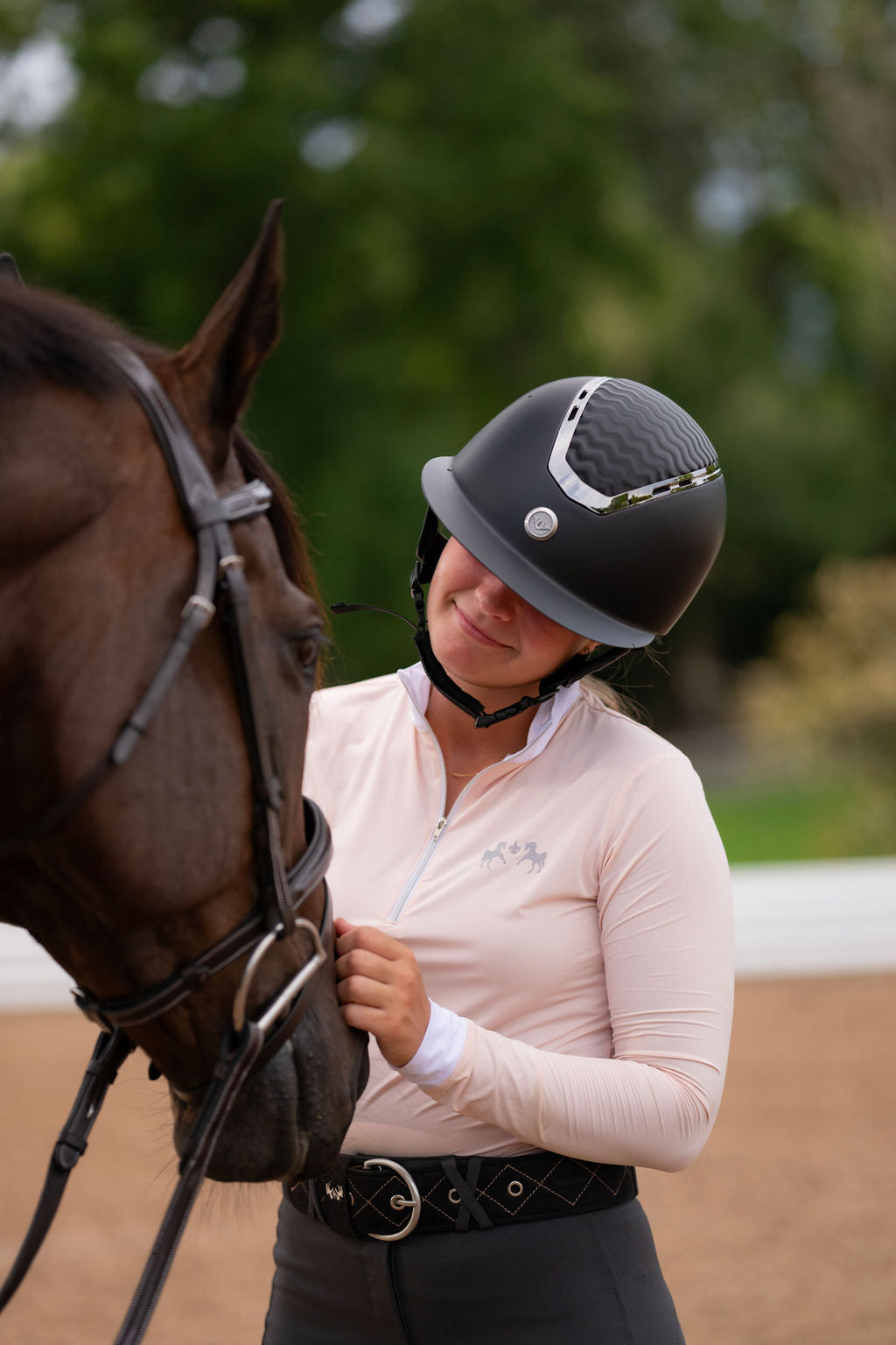 - Adjustable synthetic leather harness and padded adjustable chin strap