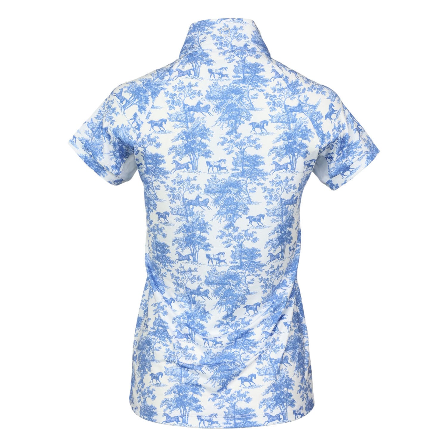 Dapplebay Equestrian Toile 1/4 Zip Light Riding Top - Short Sleeve-Blue/White