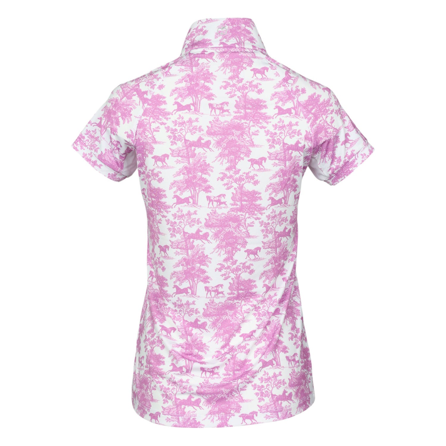 Dapplebay Equestrian Toile 1/4 Zip Light Riding Top - Short Sleeve-Rose/White